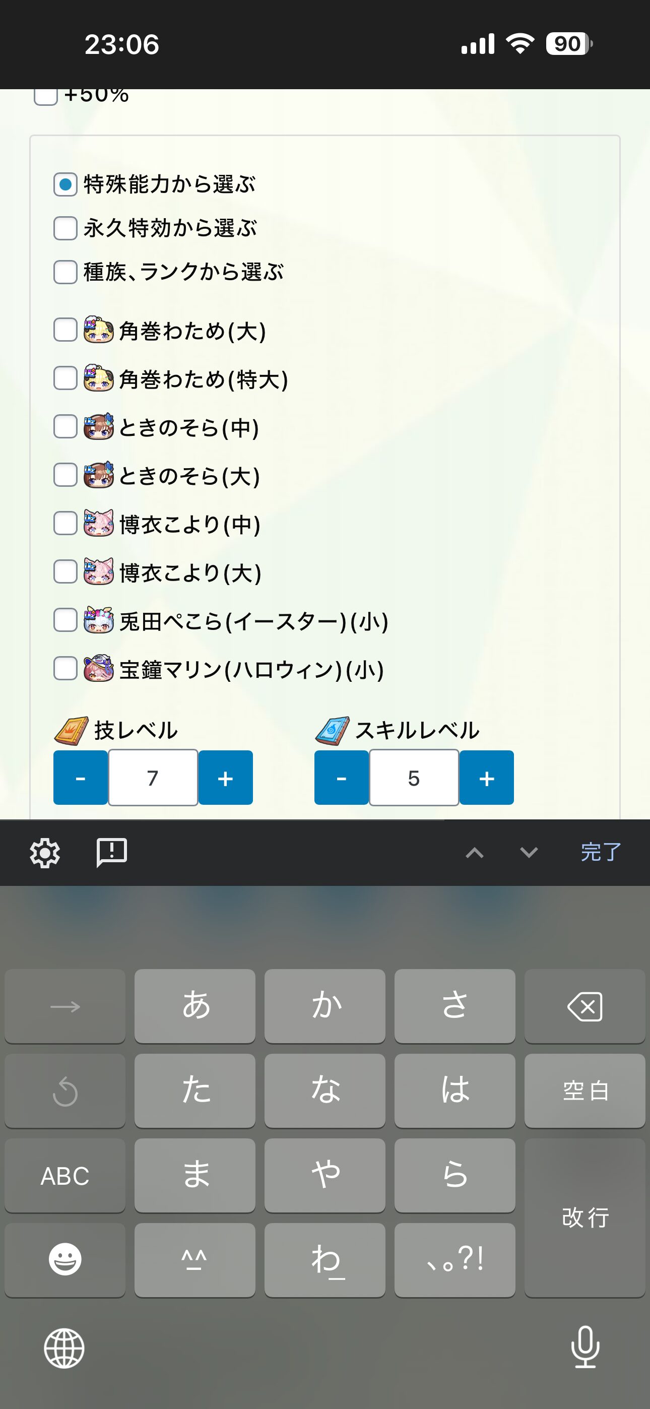 キャラ、育成度、その他条件を入力して「計算ボタン」を押せば勝手に計算してくれます。